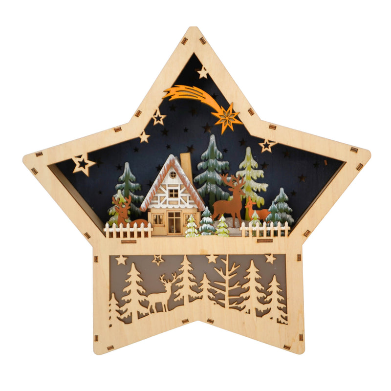 Star Shaped Lighted Wooden Christmas Scene