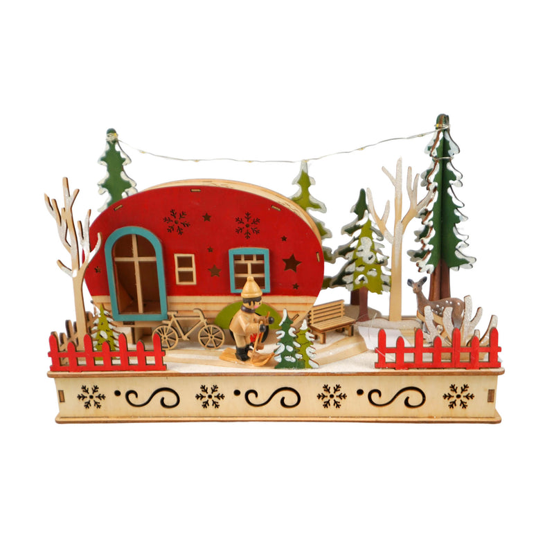 Red Camper lighted Wooden Scene