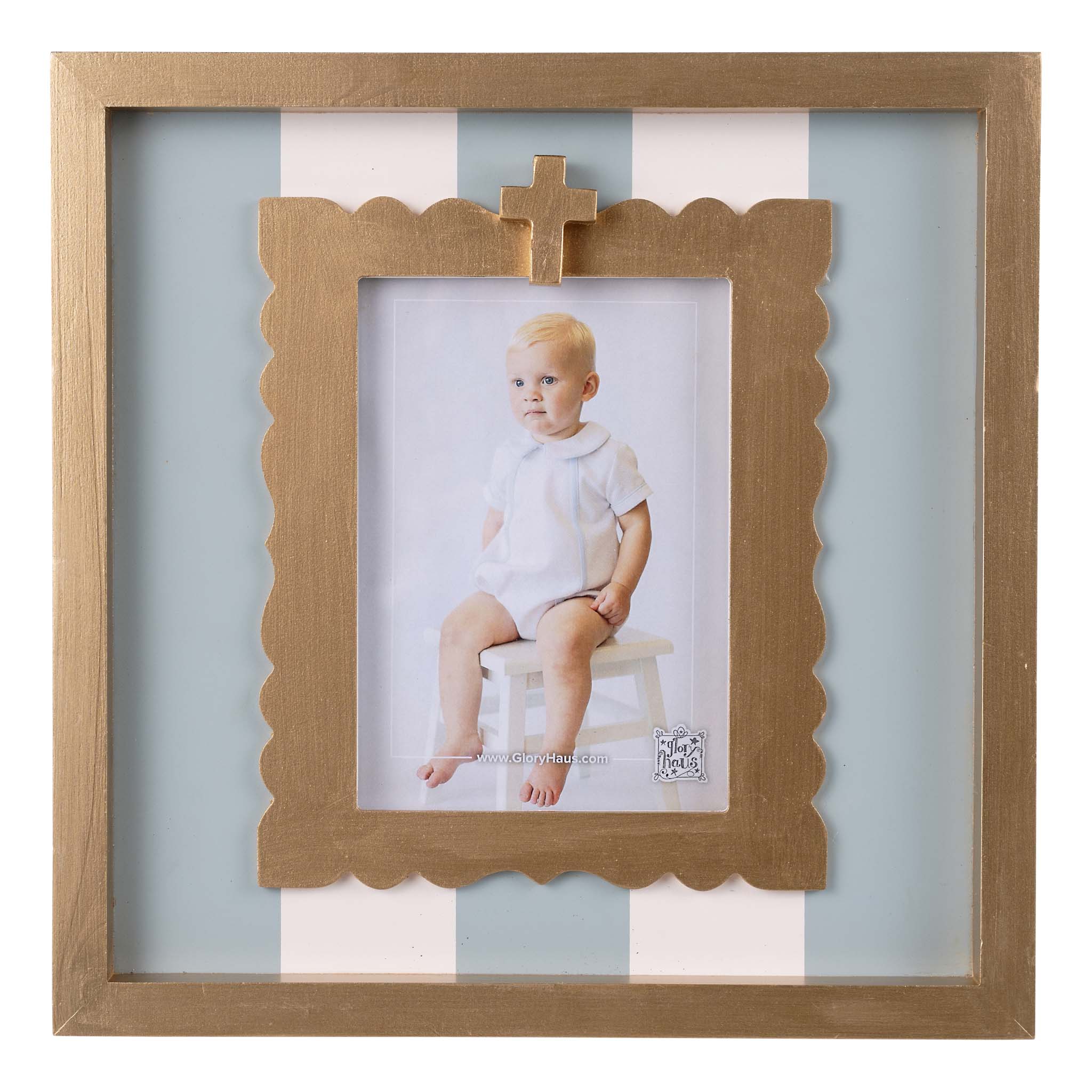 This Gold Cross Striped Frame pairs timeless stripes with a meaningful gold cross accent. Designed to display cherished photos, it brings spiritual beauty and intention into your home.