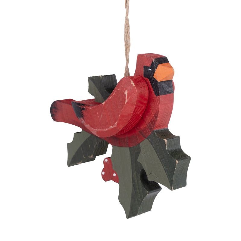 Red Bird Holly Wooden Ornament